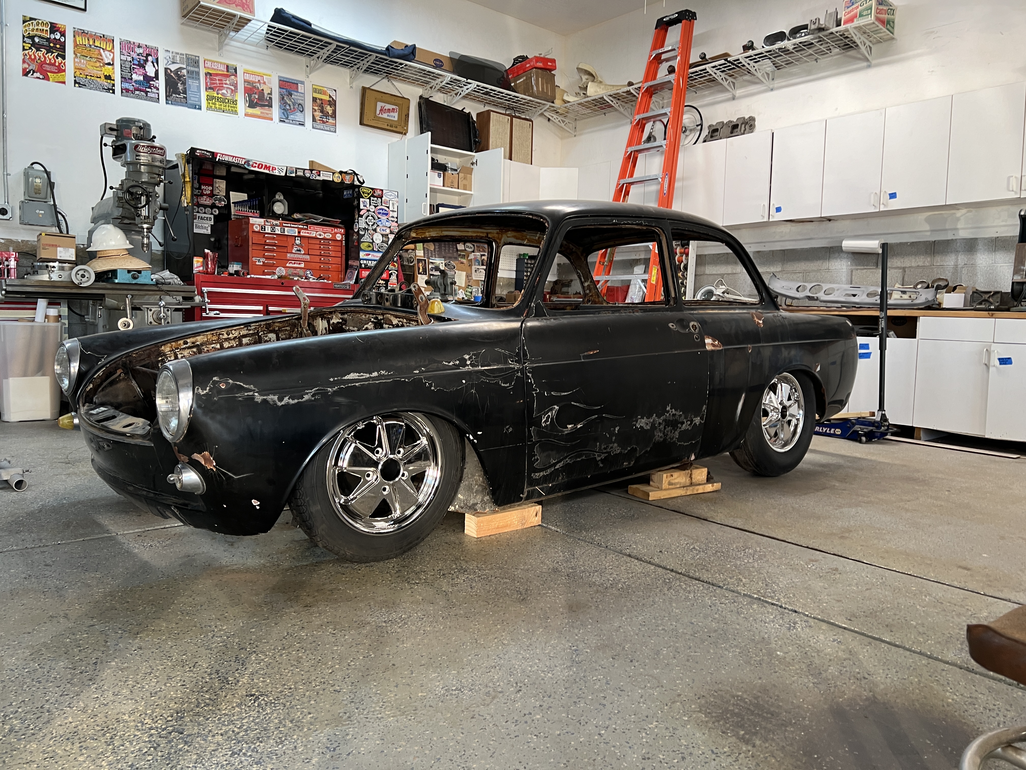 This one is the new current project and is 1964 N model which was the base model with not alot of chrome and minamul options. Here and Checkeredstrip it will be fully torn down and rebuilt into a 1980’s style of customizing call the “Cal Look” with bright paint and large engine. Follow allong on the instagram page set up for the build at