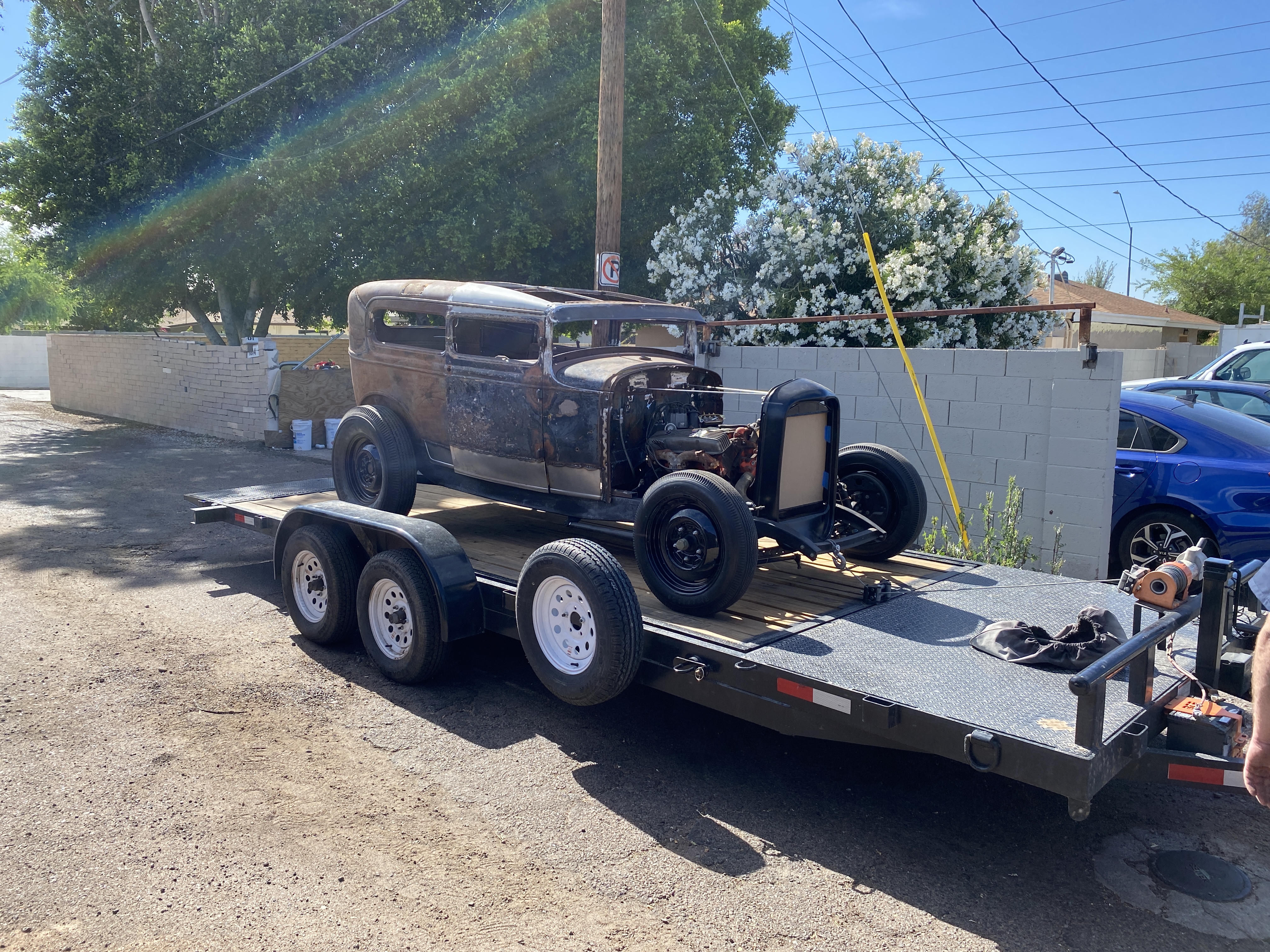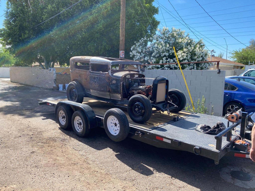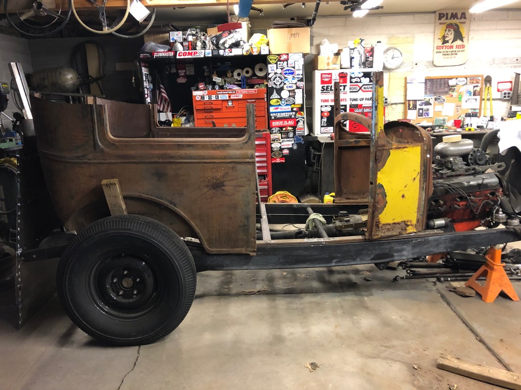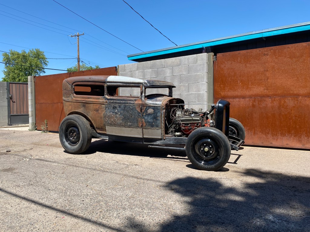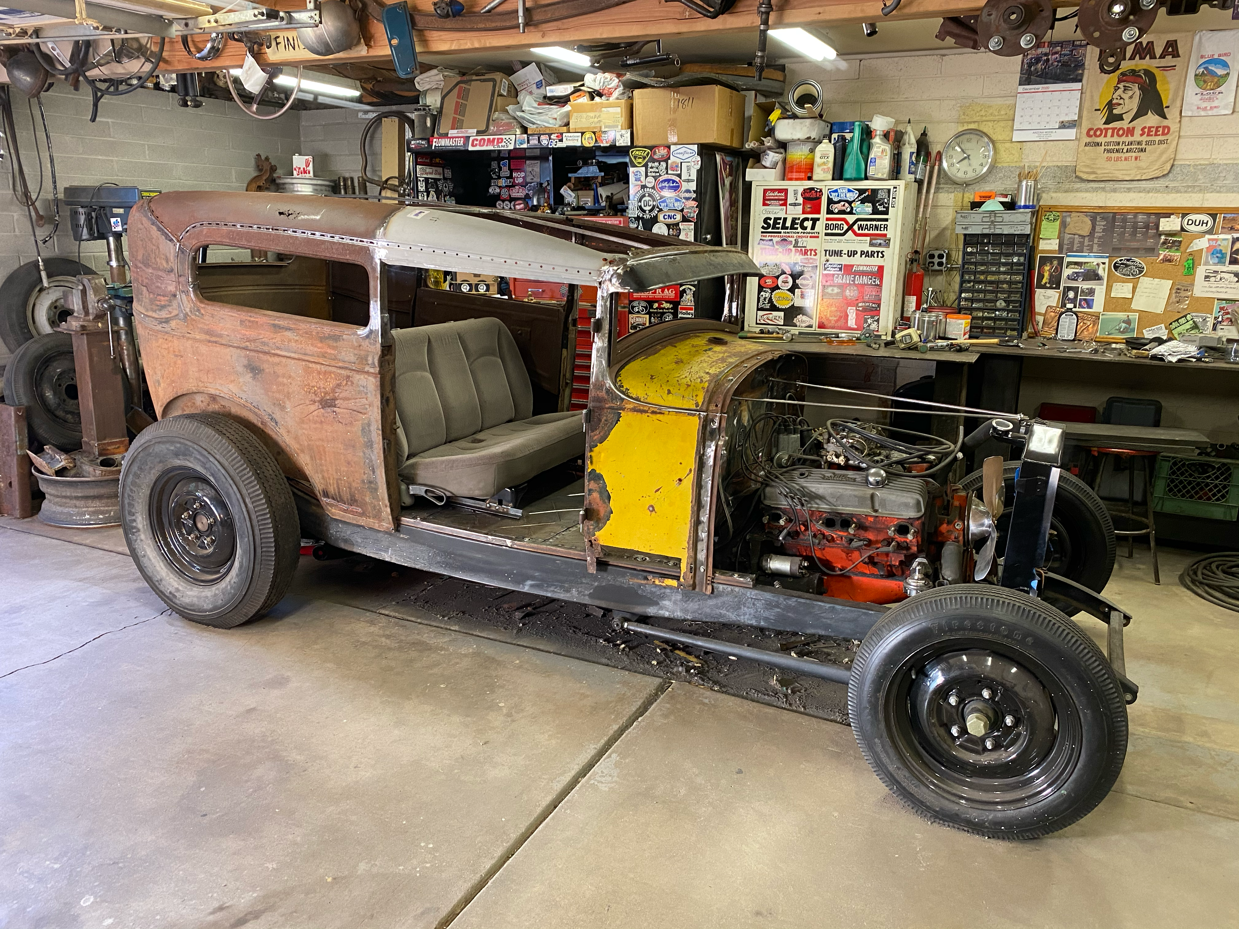 This 1930 Ford 2 door sedan started out as play house from a backyard and now is being turned into a traditional hot rod. Chopped about 5 inches on a traditional 1932 frame and split wishbone suspension with juice brakes and 9 inch rear end. Motor and trans are 350/350 chevy. The sedan was completed to customer specs and is now with the new owner who should have it on the road soon.