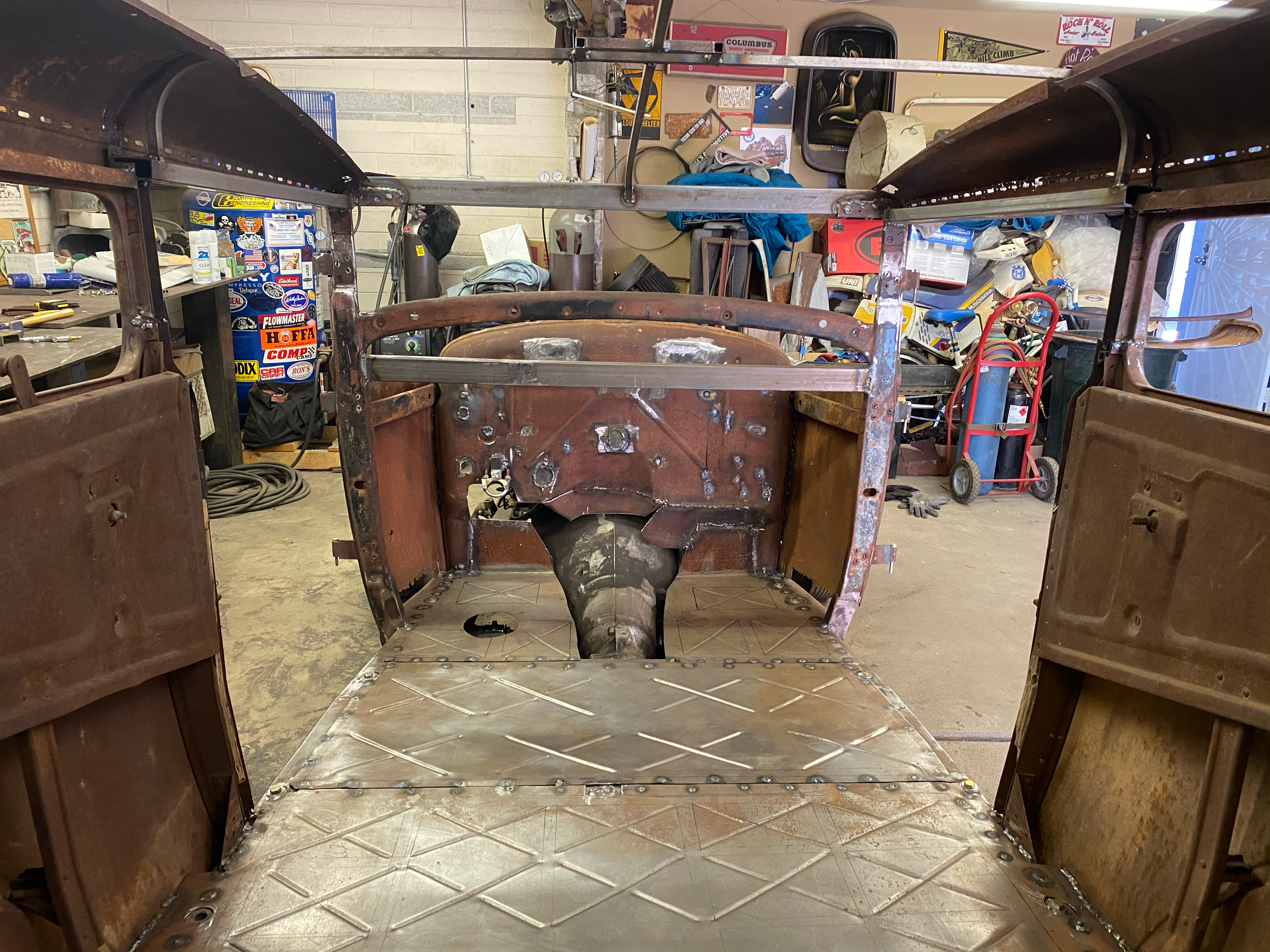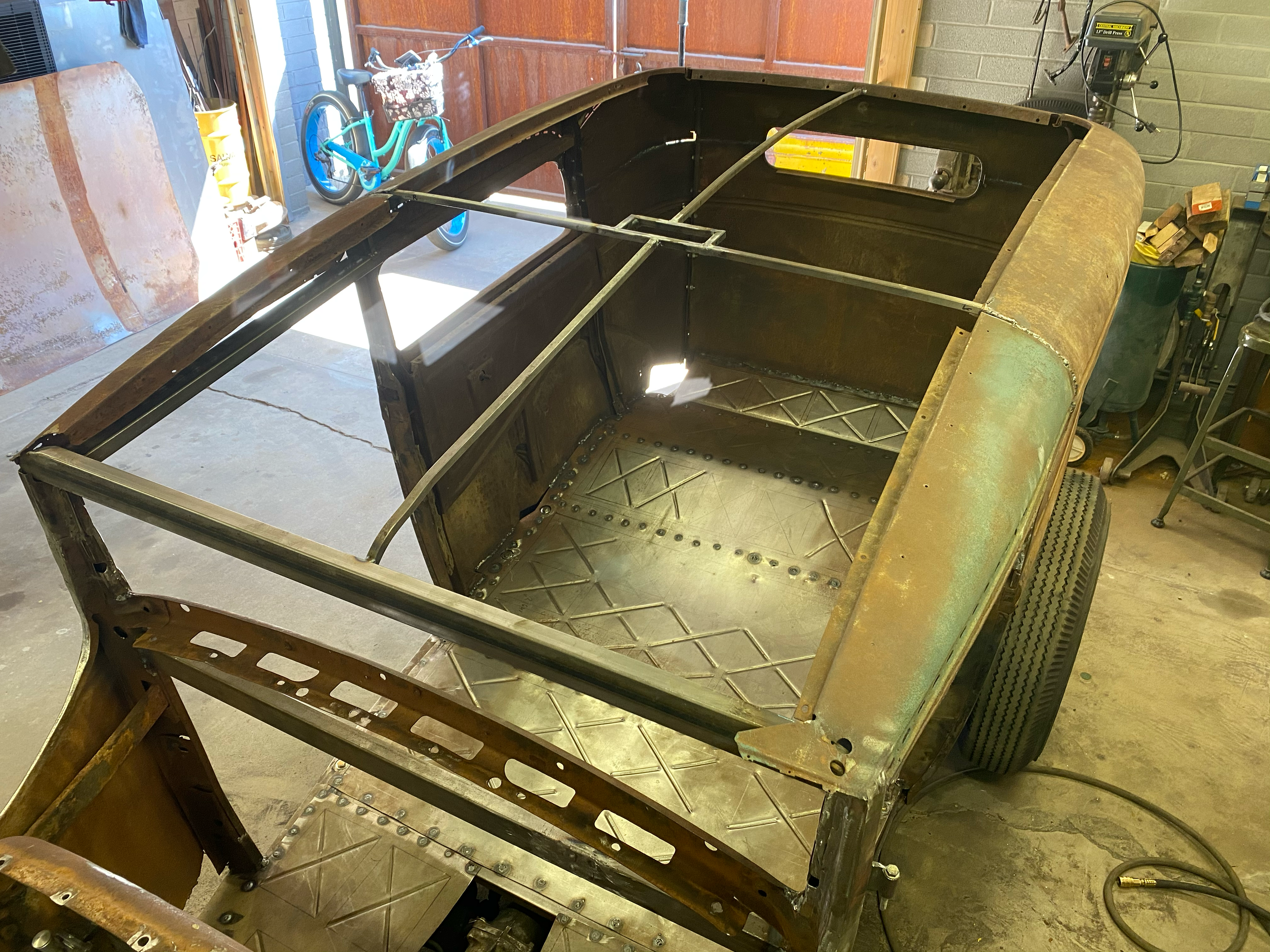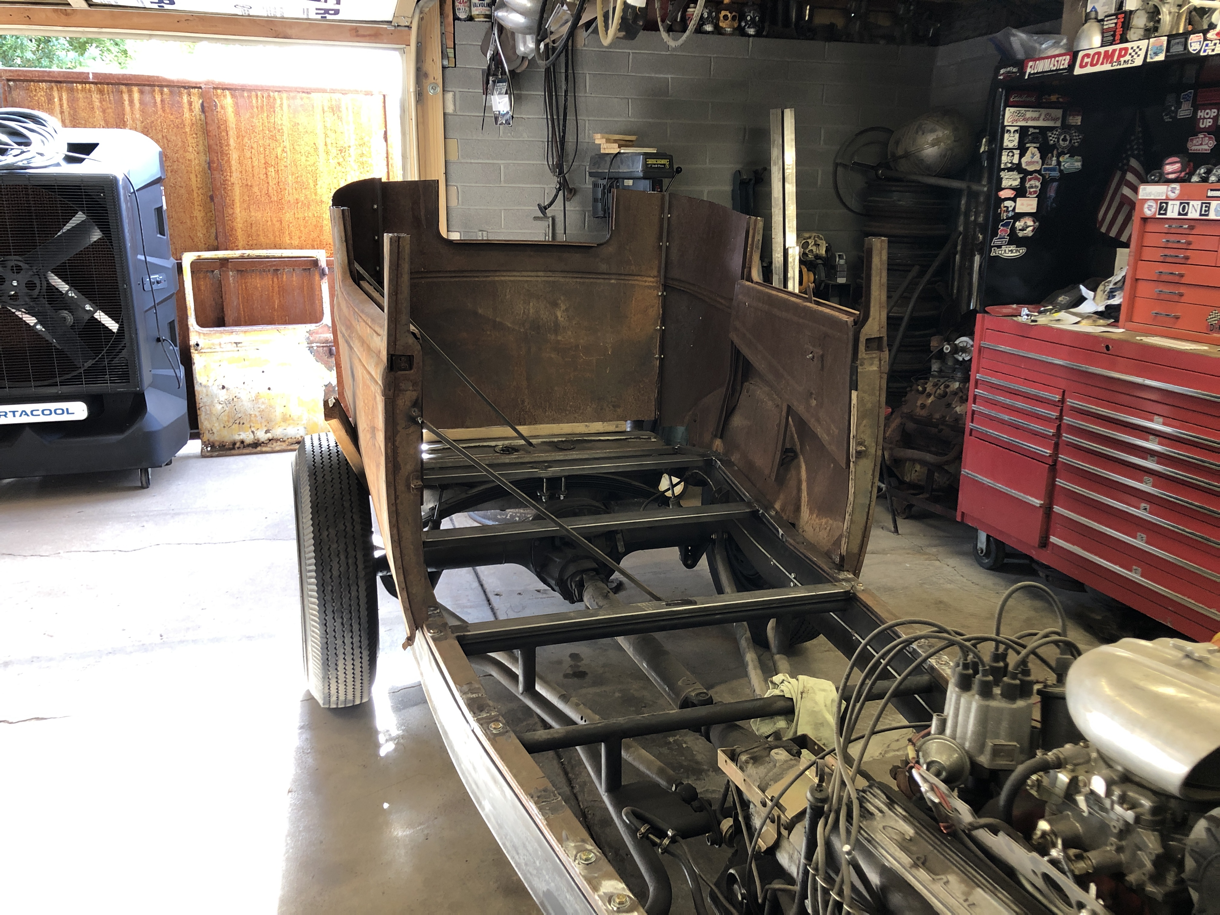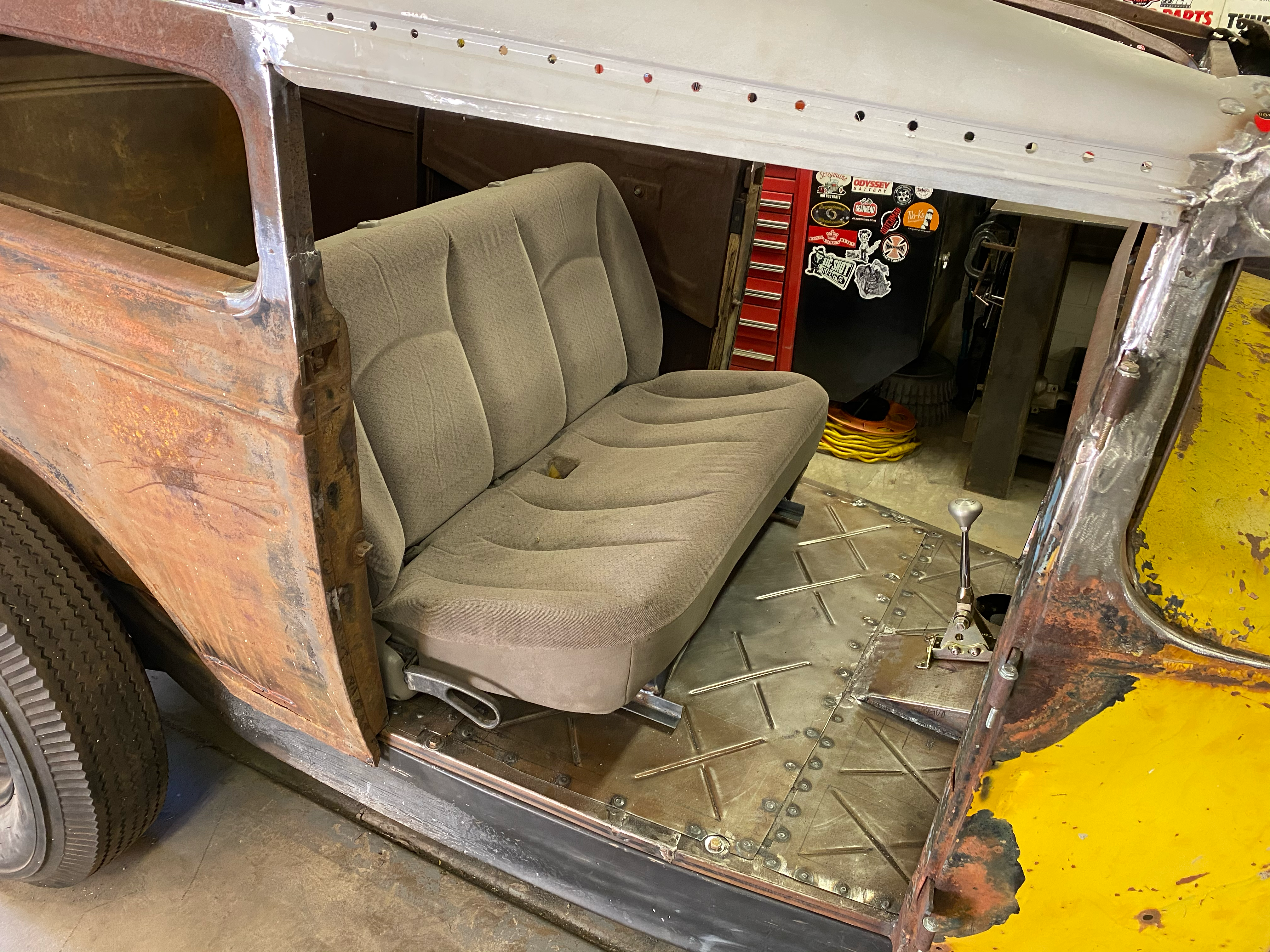 This 1930 Ford 2 door sedan started out as play house from a backyard and now is being turned into a traditional hot rod. Chopped about 5 inches on a traditional 1932 frame and split wishbone suspension with juice brakes and 9 inch rear end. Motor and trans are 350/350 chevy. The sedan was completed to customer specs and is now with the new owner who should have it on the road soon.